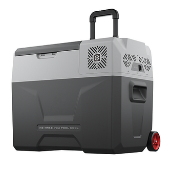 Эта модель имеет колеса и телескопическую ручку, для удобства перемещения и мобильности, спроектирована с верхним расположением компрессора и технического отсека. Камера скомпонована таким образом, что верхняя часть уже чем нижняя, в связи с такой конструктивной особенностью трубки охлаждения расположены не по всей площади стенок.